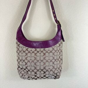 Coach Bleeker Sophie signature canvas leather shoulder bag purple trim Large