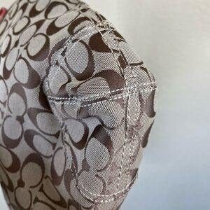 Coach Bleeker Sophie signature canvas leather shoulder bag purple trim