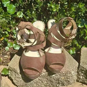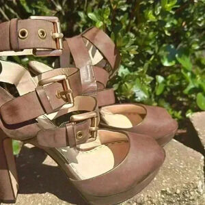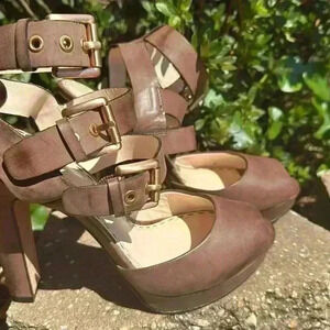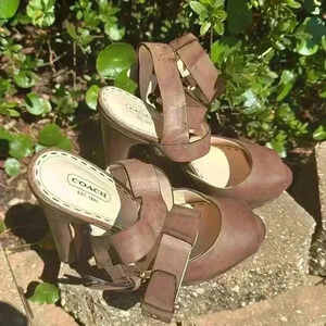Coach Bliss 3-Buckle women’s Strapped Brown Leather Platform Heels Size 8.5B