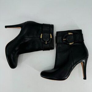 Coach Blossom Black Leather Belted Gold Buckle Zipper Heeled 5 Ankle Boots