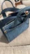 Coach mini tote in blue denim. Features tan leather accents. Ideal for daily style.