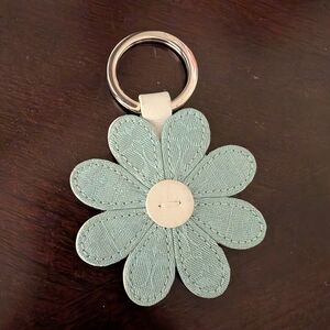 Coach Blue Flower Bag Charm With Signature C's Leather