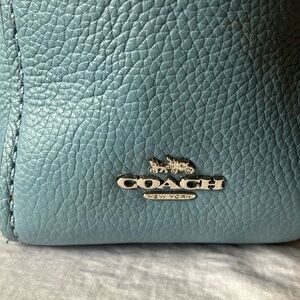 Stylish and versatile blue leather backpack, perfect for everyday use.