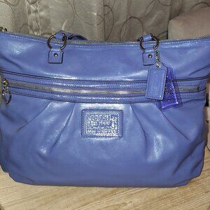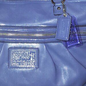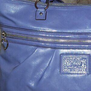 Coach Light Blue Patent Leather shoulder bag with pink satin interior lining. Great condition.