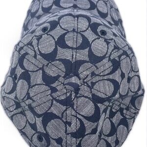 Stylish Coach hat with a blue pattern. Perfect for casual wear. I purchased 2, because I loved it so much and was fearful of losing it, so I would have another one on hand. I’ve successfully held on to this one modeled in some photos. The hat being sold is NEW with tags. It’s a darker denim, true to photos. Enjoy 🧢