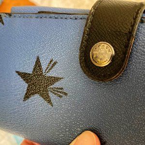 Coach Blue Star Canyon Wallet 6"x3" in decent used condition. Has been well loved by me and has a little bit of fraying on the edge that you can see in the first and second photo.