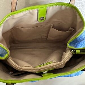 Coach Blue and Green Signature Tote with Bold Stripe