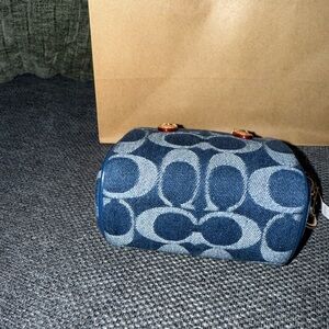 Stylish Coach baby bag. Blue fabric with tan leather accents. Compact and chic design. Let me know if you have any questions and want to see more pictures!