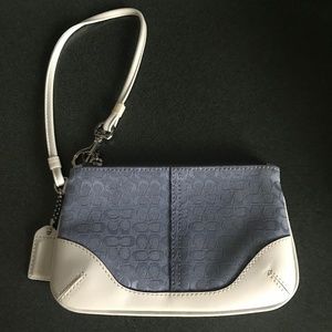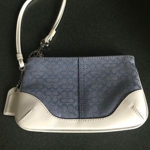 Coach Blue/White Canvas Leather Wristlet Mini Pouch for sale