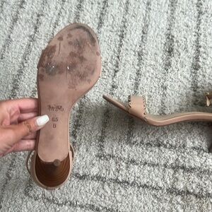 🔍 Keywords: Coach heels, nude heels, scallop heels, designer sandals, pink ankle strap heels, blush kitten heels, Coach scalloped sandals, wedding shoes, nude dress shoes, Coach leather heels