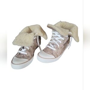 Coach Bonney Shearling Women's Lace-Up Metallic Strip High-Top Sneakers 7 1/2B