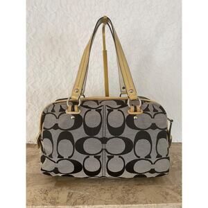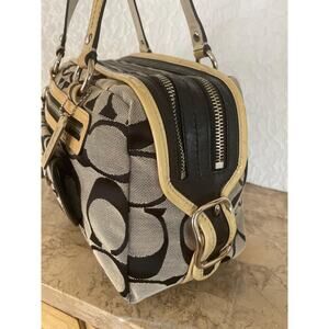 Coach Bonnie spectator black canvas tan Leather Handbag Shoulder Bag 13402