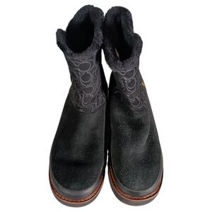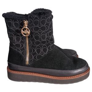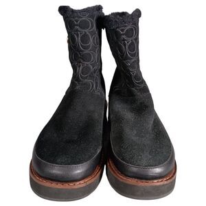 Coach Boots 7 Womens Black Signature Isa Suede Snow Flat Round Toe Low Comfort