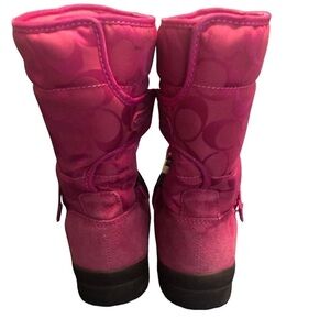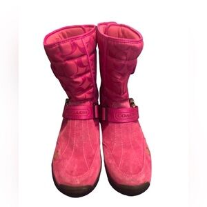 Coach Boots Sandi Dark Pink Mid Calf Signature Suede Sz. 6.5 Ankle Buckle Winter