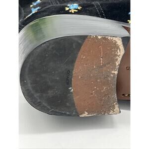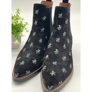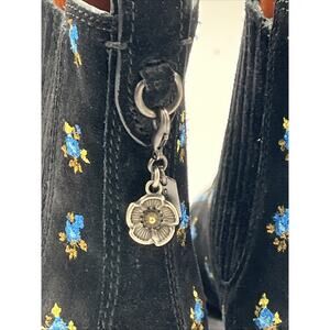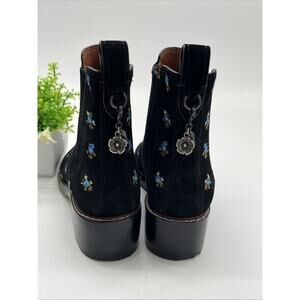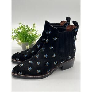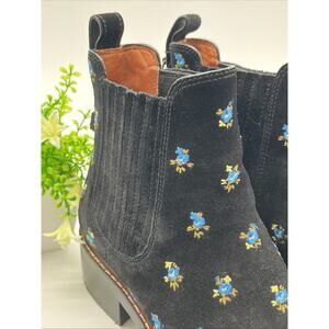 Coach Bowery Black Suede Floral Embroidery Chelsea Ankle Boots Booties 2” Sz 6