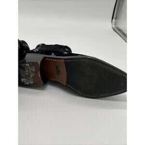 The Coach Bowery Black Suede Floral Embroidery Chelsea Ankle Boots in size 6 feature a pointed toe, pull-on closure, and a 2-inch platform height. These stylish booties are perfect for casual occasions, with embroidered floral accents adding a touch of flair. Made of leather with a suede upper, these boots have a mid heel height and a block heel style. The ankle shaft style and standard shoe width make them a versatile and fashionable choice for any woman's wardrobe.