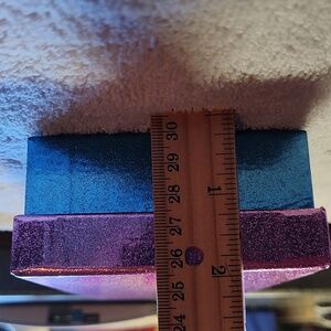 This is a Coach box.. Beautiful pink/ purple glitter top box. Beautiful blue glitter bottom. Black interior. Please see photos for measurements.