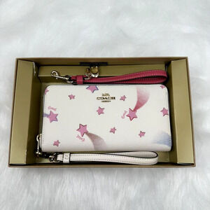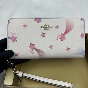 New With Tags, Coach Boxed Long Zip Around Wallet With Disco Star Print Chalk Original Gift Box, from smoke and pet free environment.