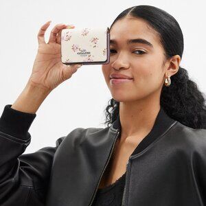 Coach Boxed Mini Wallet On A Chain With Floral Print