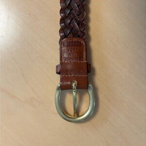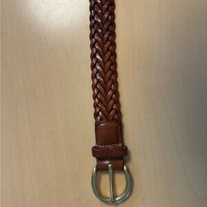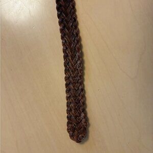 Stylish braided leather belt in rich brown. Perfect for any outfit. 80cm
