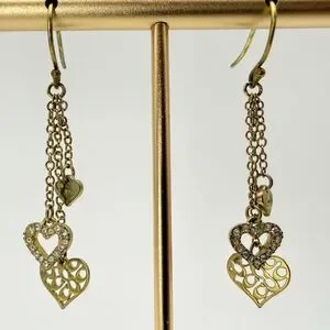 Coach Brass Vintage Gold Rare! Triple Heart Drop Earrings with Crystal Accents