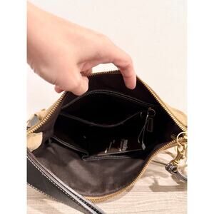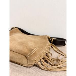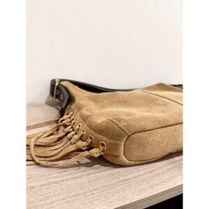 Coach Brooklyn 39 Suede Fringe Trim Shoulder Handbag Beige