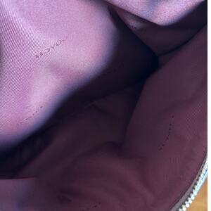 In great condition but is pre-loved so it has minor signs of wear. There is a mark inside one of the leather lined pockets as pictured. Minor damage to one of the handles edging as pictured. This is a great everyday bag, that can be work several ways and has a lot of storage.