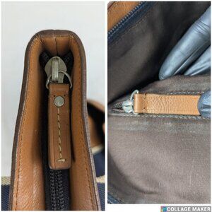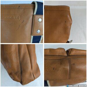 Coach Brown 2-Way Shoulder & Tote Brown Leather Bag Heritage Stripe Made Vietnam