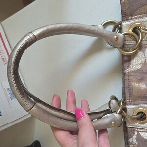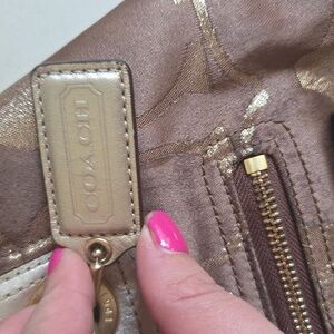 This stylish tote bag features a luxurious brown and gold design, perfect for any occasion. Crafted with attention to detail, it offers both elegance and functionality.