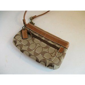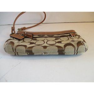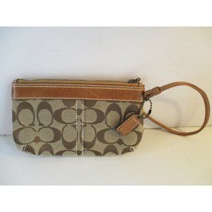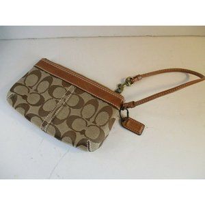 Coach Brown Canvas Leather Mini Slide Strap Zip CC Logo Wallet Wristlet Purse
