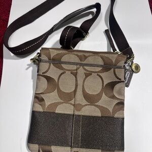 Coach Brown Canvas Signature Crossbody Bag with Adjustable Strap