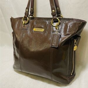 Coach Brown Crinkle Patent Leather Gallery North/South Purse Tote, EUC.