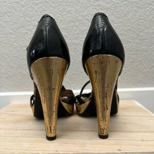 Coach Brown & Gold Cheetah Lined High Pump Heels