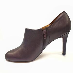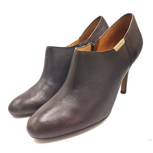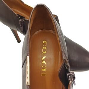 Coach Brown Leather Ankle Booties | Minimalist High Heel Classic Fall Zip Boots