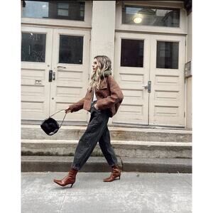 These chocolate brown Coach leather booties strike that perfect fall note: strong, sculptural, and quietly luxurious. With a slender 3.5” heel, minimalist side zip, and round toe, they walk like power shoes but feel like wardrobe poetry.