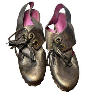 Coach Poppy collab. Excellent overall condition. Super high heel. Strappy. Close toed. Coach brand on the lace up grommets and on the back of the heel. Lots of neat details. Lots of studs. "Rena"