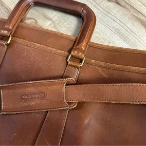 Elegant brown leather bag with strong handles. Comes with adjustable strap. Perfect for work or travel.