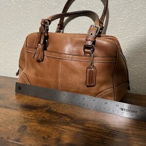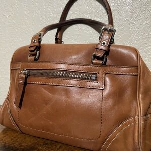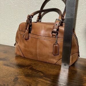 Stylish Coach shoulder bag in rich brown leather. Features elegant design and sturdy handles. Perfect for everyday use.