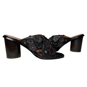 Coach Brown Leather Tea Rose Mule Sandals - EUC