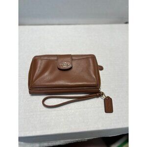 Coach Brown Leather Wristlet Wallet With Card Slots & ID Window