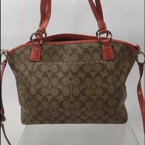 Coach Brown Logo Orange Trim Faux Leather Purse