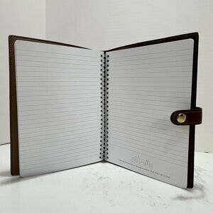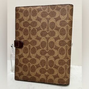 Elegant notebook with Coach monogram design. Secure snap closure. Perfect for home office use.
