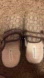 New never wore! Step into comfort with these Coach slippers, featuring a classic brown monogram design. The open-back style offers easy wear, while the adjustable strap ensures a snug fit. Perfect for lounging in style.