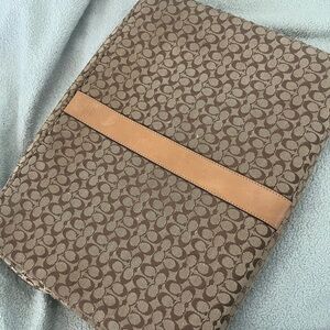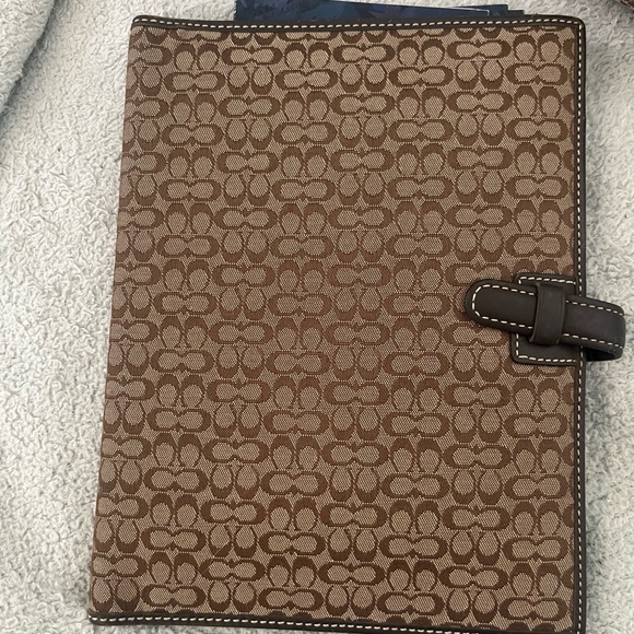 Elegant Coach notebook with signature pattern. Secure strap closure. Ideal for home office use.
