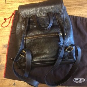 Gently used Coach pebble leather backpack in brown. Zipper pocket in the back and one inside the bag. Excellent condition used a few times. Measurements 10 1-2 W x 9 1/2 L x 4 W.