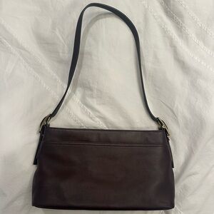 This medium-sized bag features a rectangular shape with a zip closure and a long shoulder strap handle drop