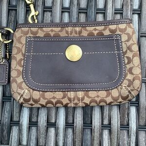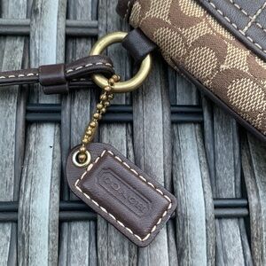 Coach Brown Signature C Canvas and Leather Wristlet