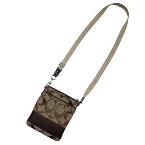 Coach Brown Signature Jacquard Stripe Crossbody Bag Purse Adjustable Strap