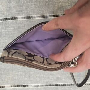 Coach Brown Signature Logo Wristet Size 6x4 Purple Lining New Whitout Tag