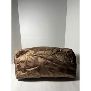Stylish Coach tote bag in brown with signature pattern. Perfect for everyday use.